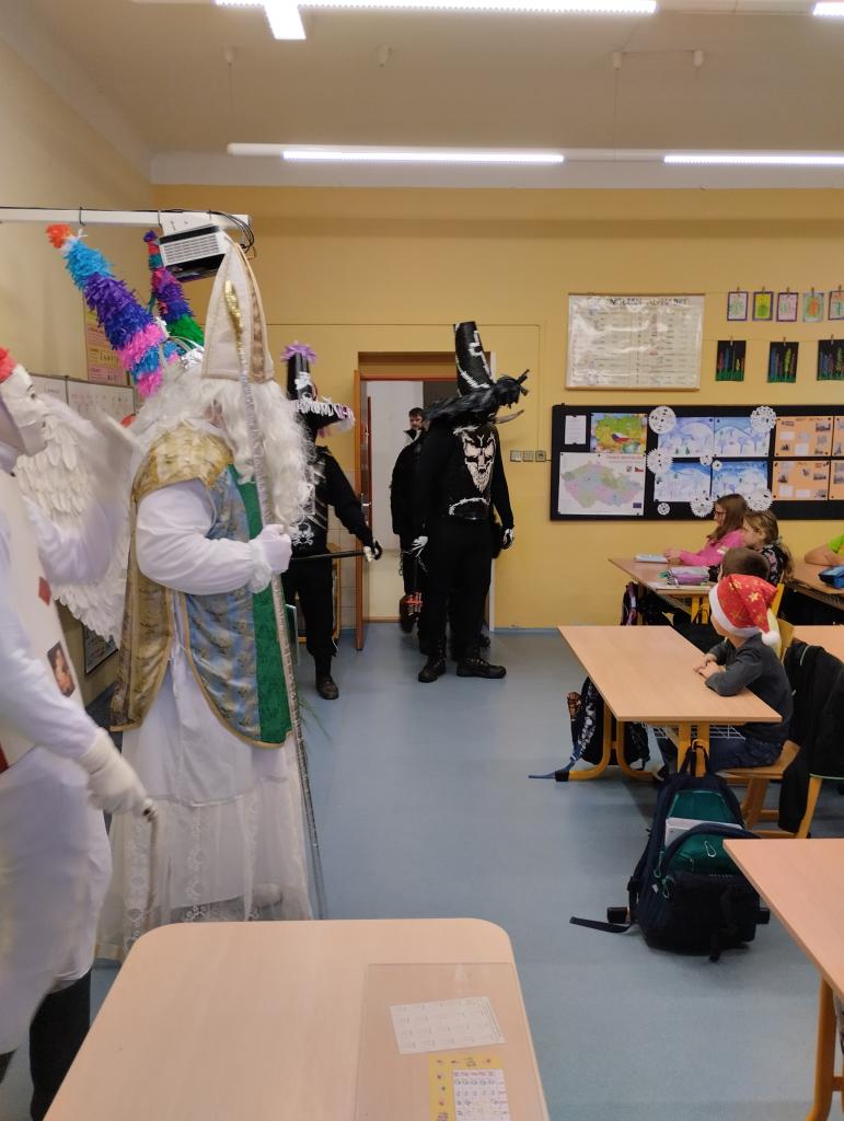 Jako každý rok, i letos navštívil naši školu Mikuláš, čerti a další pomocníci. Děti si pro ně připravily písničky a krásné básničky. Nakonec došlo k velmi netrpělivě očekávané nadílce. Poté, co všichni slíbili, že budou hodní, se vzácná návštěva rozloučila a vrátí se sem zpátky až za rok. Moc děkujeme touto cestou našim sponzorům za poskytnutí darů do mikulášských balíčků.