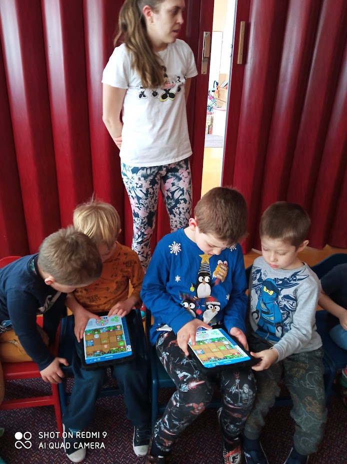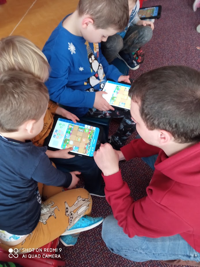 Projektové dny byly zaměřeny na základy informatického myšlení, robotiky, programování a automatizace (teoretických i praktických ukázek programování robotů pomocí aplikací v tabletech a s využitím prezentace na IA tabuli, kdy se děti učily zadávat robotovi příkazy, ovládat jeho rychlost, speciální pohyby, měnit barvu světel apod.) Závěrečnou aktivitou byla ukázka většího programovatelného robota mBot. Děti moc chválíme za aktivitu a výbornou práci.