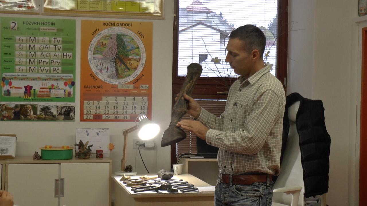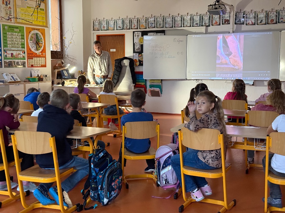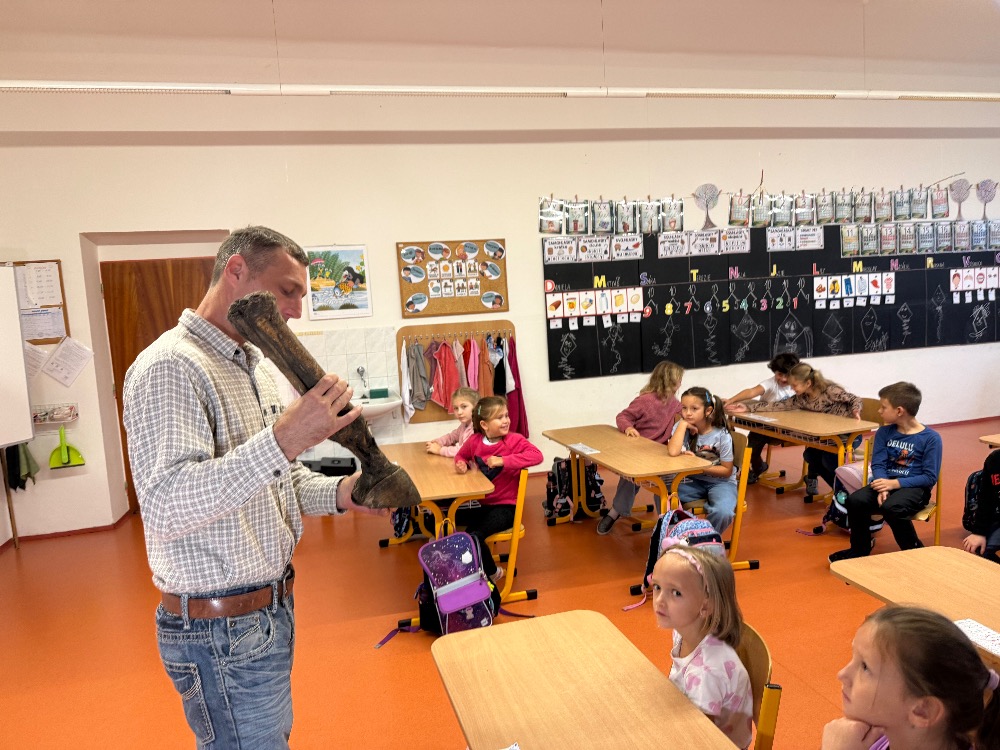 V pátek 10. října 2025 naši školu navštívil pan Jiří Gazdoš, kovář a podkovář, který dětem poutavě přiblížil své řemeslo. Žáci se dozvěděli, co všechno je náplní práce kováře a podkováře, jaké druhy podkov existují a proč se používají. Zajímavé bylo také povídání o rozdílech mezi podkovami pro hříbata, dospělé a dostihové koně – včetně lehčených variant.