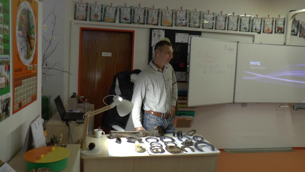 Pan Gazdoš přinesl i ukázky různých typů podkov a vysvětlil, jak se podkovy upevňují. Děti měly možnost vidět video o ošetřování koňských kopyt a dozvěděly se, proč je potřeba koně kovat a jaké vzdělání a dovednosti člověk potřebuje, aby se mohl stát podkovářem.